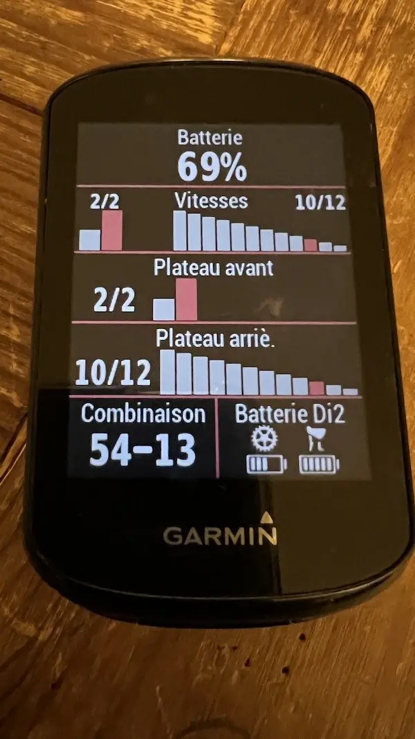 Après changement de chaîne, re-réglage avec E-tube. Mais j’ai toujours ce fichu bruit, intermittent de plus. ça fait un peu cheap sur un vélo à 13k€.
