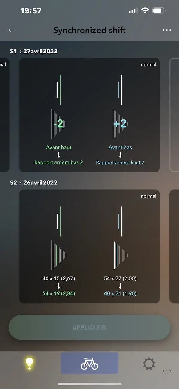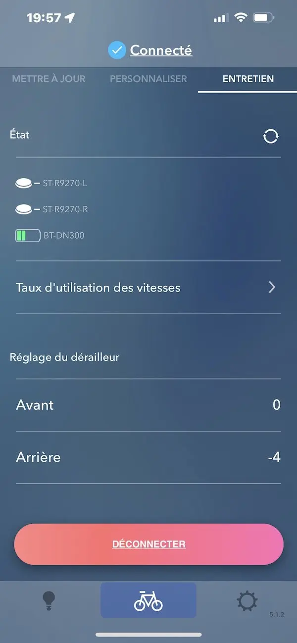 Cette même application permet d’ajuster certains réglages, comme la position des dérailleurs si nécessaire ou le choix entre les modes de changements de vitesse « normal », « semi-synchronized » ou « synchronized ».