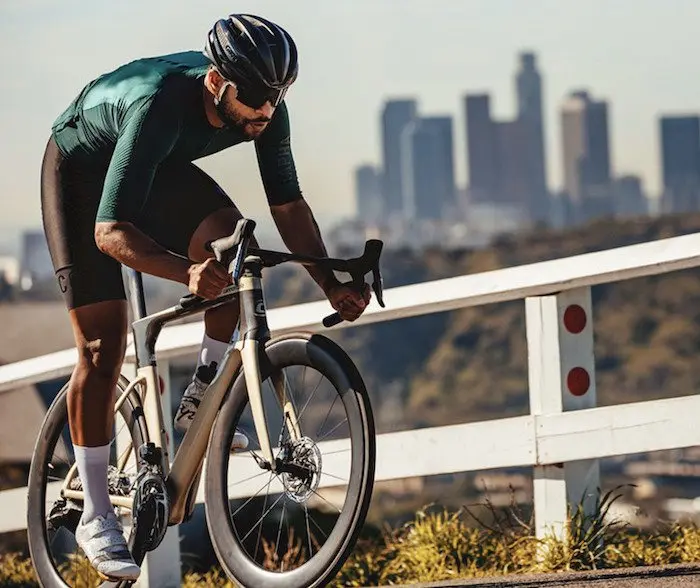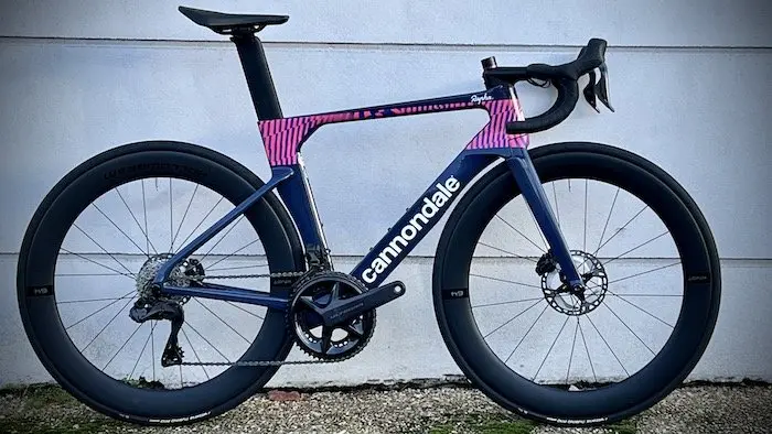 Cadre : SystemSix Hi-MOD Carbon – Fourche : Hi-MOD Carbon – Poste de pilotage : HollowGram KNØT SystemBar – Tige de selle : HollowGram 60 KNØT Carbon – Roues : HollowGram 64 KNØT – Pneus : Vittoria Rubino Pro Speed 700×25 – Pédalier : Shimano Ultegra 12 v. – Dérailleurs : Shimano Ultegra Di2 12 v. – Leviers : Shimano Ultegra Di2 12 v. – Freins : Shimano Ultegra Disc – Cassette : Shimano Ultegra 12 v. 11-30 – Selle : Fizik Vento Argo R5 – Poids : 8,160 kg en taille 54 sans pédales – Prix : 8799 € – Contact : cannondale.com |