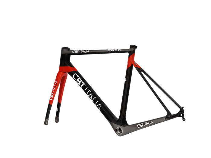 Les sections du tube horizontal, diagonal et vertical, conçues pour réduire les vibrations et l’effet de torsion, présentent un profil plat. La fourche est également inédite, avec une ligne légèrement incurvée. C.B.T. Italia a aussi redessiné le cintre et la potence : le kit, de marque NIX (une marque détenue par l’entreprise de Cuneo) garantit un routage optimal des câbles des commandes avant jusqu’aux composants du vélo. Le poids final du cadre est à peine plus d’un kilo.
