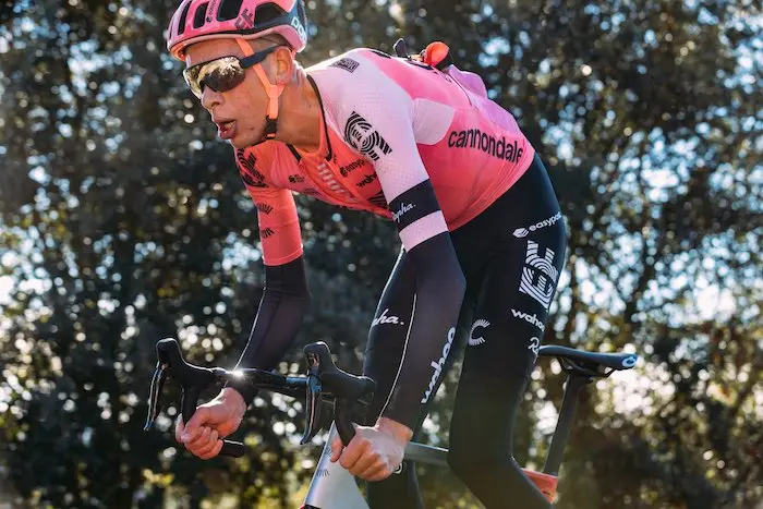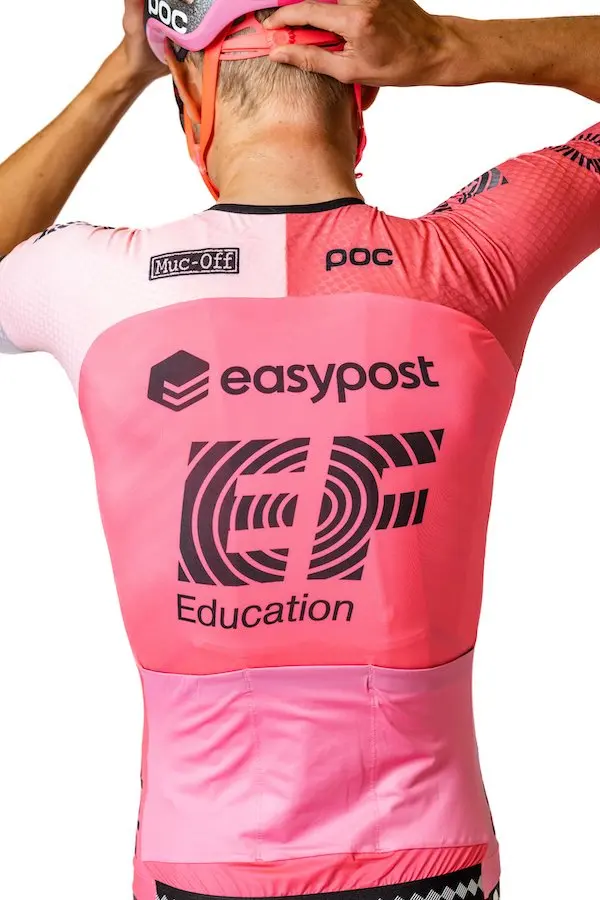 Les équipes EF Education – Easypost (hommes) et EF Education Tibco-SVB (femmes), toujours équipées par Cannondale, ont dévoilé leur maillot pour la saison 2023. Conçues par Rapha, les tenues reviennent à un peu plus de normalité en abandonnant le cuissard vert kaki qui était jusqu’alors associé aux nuances de rose du maillot. Au sein de l’équipe masculine, on note l’un des gros transferts de l’année avec l’arrivée du champion olympique Richard Carapaz, qui formera avec Rigoberto Uran, Esteban Chaves et Hugh Carty un quatuor intéressant sur les courses à étapes.