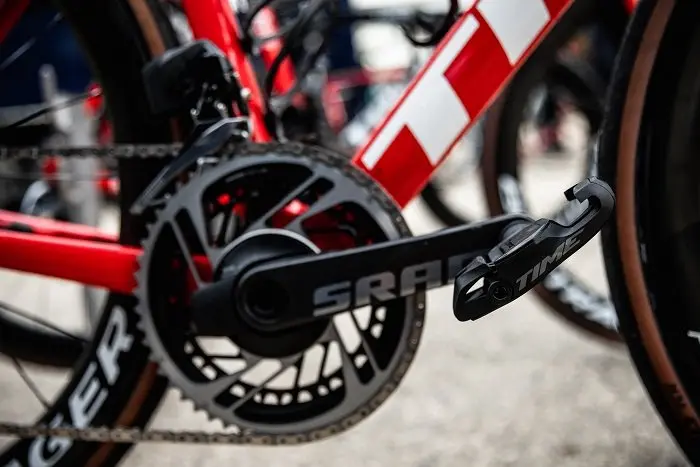 Trek-Segafredo utilisera les pédales Time XPRO, conçues en mettant l’accent sur le cycliste. Les pédales de route Time sont dotées de la technologie ICLIC pour une entrée facile, d’une faible hauteur à l’axe pour une efficacité améliorée, d’une grande surface d’appui pour un meilleur transfert de puissance, et une liberté angulaire ainsi qu’un facteur Q pour réduire la tension et prévenir les blessures.