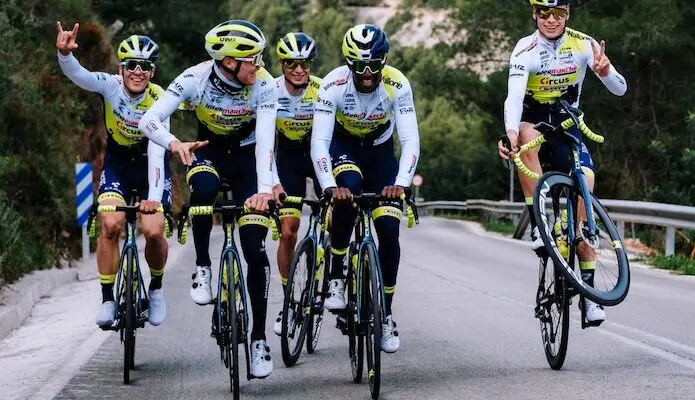 L’équipe Intermarché-Circus-Wanty a dévoilé les deux vélos que se partageront Biniam Girmay, Rui Costa, Lilian Calmejane, Louis Mentjes, Rein Taaramäe et leurs coéquipiers sur les épreuves World Tour en 2023. L’équipe belge reste fidèle à la marque Cube, avec les Litening C:68X en version Aero et Air selon les profils. Les transmissions sont toujours des Shimano Dura-Ace 12 vitesses (avec chapes de dérailleur Ceramic Speed), mais le montage est complété par des pédaliers Rotor Aldhu Carbon avec un capteur de puissance. Enfin, les roues sont fournies comme l’an dernier par Newmen.