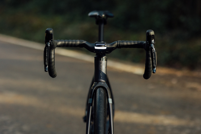 Les trois modes d’assistance peuvent être changés par l’intermédiaire d’un bouton facile d’accès sur le tube horizontal, qui indique quatre codes couleurs en fonction des modes enclenchés : blanc (système allumé mais non actif), vert (premier niveau d’assistance), orange (deuxième niveau), violet (troisième niveau). Les modes peuvent aussi être changés par l’intermédiaire de petits boutons placés en option sur le poste de pilotage, bien pratiques pour agir presque comme des changements de vitesse (par exemple en changeant le mode d’assistance pour quelques centaines de mètres en cas de variation de pourcentage au milieu d’une pente). Le système dispose enfin d’un compteur spécifique, qui indique la vitesse, le kilométrage, le niveau de batterie et l’autonomie restante, en pourcentage et en kilomètres. Ce compteur s’installe sur un support type Garmin ou Wahoo, et peut être remplacé en connectant le vélo à un compteur GPS compatible. Comme le Gain de la génération précédente, le vélo est connecté à deux lumières intégrées à l’avant et à l’arrière, un plus pour la visibilité.