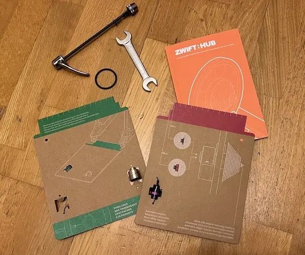 Mais ce n’est pas tout. Ce Zwift Hub est livré pratiquement prêt à l’emploi, avec seulement les deux pieds principaux à monter et à visser. Et comme les outils sont fournis, cela ne prend pas plus de cinq minutes chrono. Le Zwift Hub est un home-trainer à transmission directe, ce qui signifie que la roue arrière du vélo doit être démontée et la partie arrière du cadre fixée à l’appareil. L’autre astuce de Zwift, la plus judicieuse d’ailleurs, se situe au niveau d’un patron en carton, conçu pour bien mesurer l’écartement des pattes arrière (différent selon le type de cadre route, VTT, ville, à blocage rapide ou à axe traversant, récent ou ancien), et ne pas se tromper d’embout. Enfin, la plateforme propose une série de vidéos courtes qui expliquent les différentes étapes de montage du Zwift Hub. Simple et efficace pour les novices.