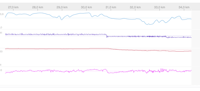 Par rapport aux deux home-trainers Elite cités plus haut justement et que nous avons beaucoup utilisés, le Zwift Hub marque le pas en termes de précision de la mesure de puissance. Pour le vérifier, nous avons effectué toutes nos séances avec un autre capteur de puissance connecté sur le vélo, qu’il s’agisse d’un Quarq ou des pédales Garmin Rally.