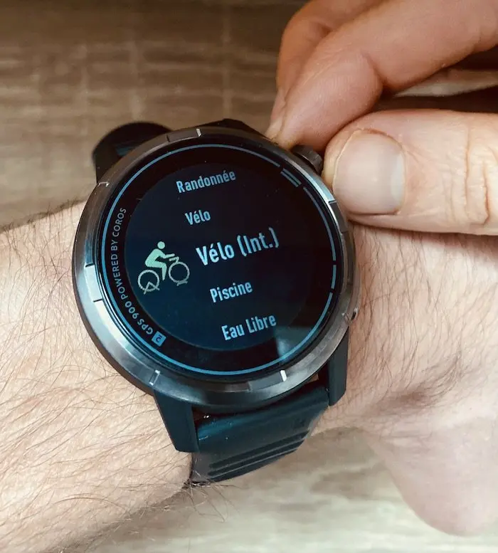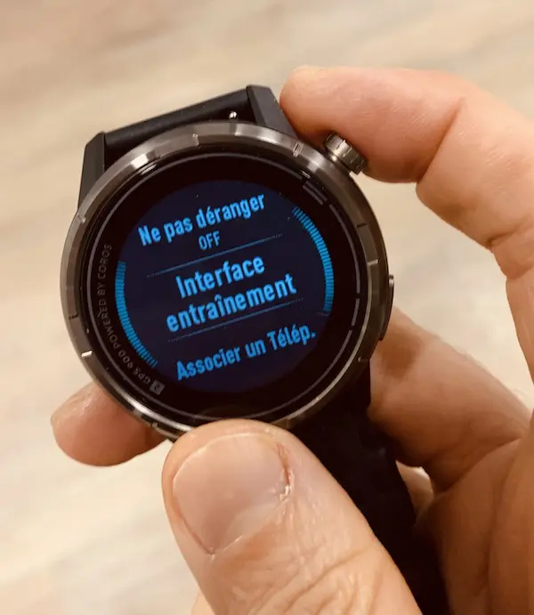 La montre est très facile à utiliser avec seulement deux boutons, les deux placés à droite, dont celui du haut à molette. Il est ultra simple de faire dérouler de manière intuitive le menu. Même pour moi qui déteste m’approprier des nouvelles technologies, et qui en plus ne fera pas l’effort de lire un quelconque manuel d’utilisation. Quel bonheur ! C’est simple et hyper-intuitif. Il n’y a pas pléthore d’options, ce qui permet de faire rapidement le tour des menus. En clair, en quelques pressions, on peut lancer une activité, un entraînement, modifier les paramètres de base et visualiser ses paramètres d’entraînement. Basique ! Mais redoutablement efficace !