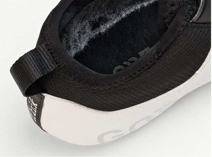 Le premier contact avec les Fizik laisse une agréable sensation de chaleur grâce à l’intérieur doublé. Le chaussant est plutôt large, dans la tendance des autres modèles de la marque mais surtout il est assez volumineux. Ce point est important et laisse augurer, lui aussi, une protection supplémentaire contre le froid car on sait que le pied ne doit pas être serré afin que la circulation sanguine – et donc la lutte contre le froid – s’effectue dans de bonnes conditions.