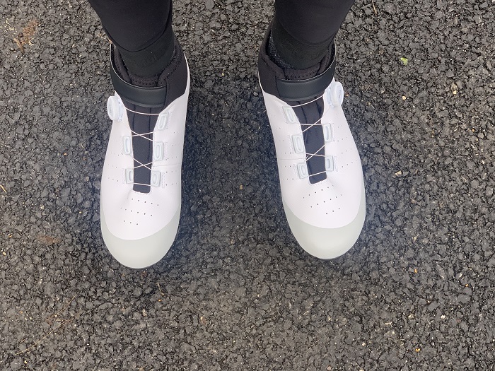 A l’usage et sans surprise, les Fizik se révèlent le parfait compagnon des sorties régulièrement effectuées dans le froid et/ou la pluie. Les cyclistes sensibles au niveau des pieds verront ici un atout indispensable pour continuer à s’entraîner quand les températures sont négatives comme cela a été régulièrement le cas dans de nombreuses régions françaises sur cet hiver. Comme évoqué ci-dessus, avec de simples surchaussures « chaussettes » ou de pluie mais fines et légères, ce qui n’augmente que peu le poids total tournant autour de l’axe de pédalier, la protection est totale. Contre le froid évidemment et contre la pluie, avec l’assurance quasi certaine de revenir avec les pieds au sec. Il n’y aurait que le fait de rouler durant de longues heures sous une très forte pluie qui pourrait finir par provoquer une entrée de l’eau par capillarité via la cheville. Mais dans le cadre du test, cela n’a pas été enregistré malgré des averses parfois fortes.
