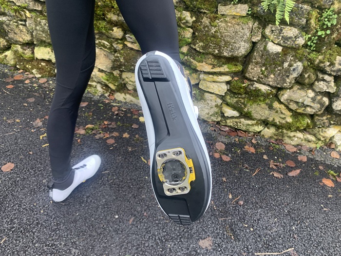 – La semelle extérieure aurait pu être plus rigide, surtout en considérant la pointure utilisée (en 45,5). Le rendement n’est donc pas maximal. Mais là encore, le choix de Fizik de privilégier le confort à l’efficacité à tout prix, se défend. Il ne s’agit pas d’un modèle destiné à aller chercher ses propres records.