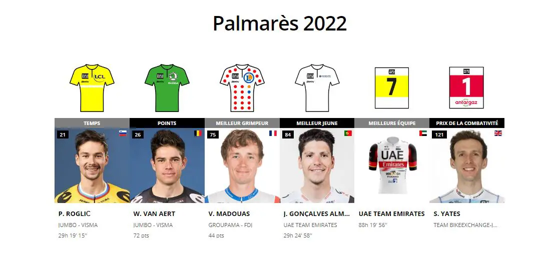 Jumbo-Visma : Vingegaard (Dan), Dennis (Aus), Laporte (Fra), Foss (Nor)