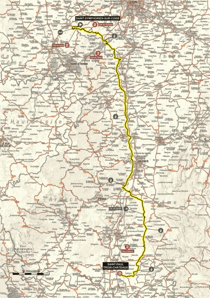Jeudi 9 mars – Étape 5 – Saint-Symphorien-sur-Coise/Saint-Paul-Trois-Châteaux (212,5 km – 2 050 D+)