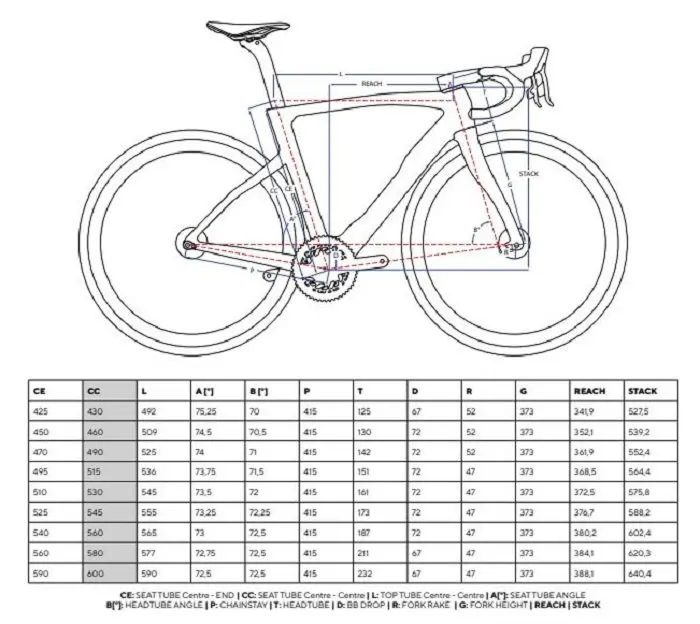 La plupart des vélos de route haut de gamme des concurrents sont proposés en six à huit tailles maximum. Pinarello en propose neuf. La raison ? Parce que les italiens savent à quel point le positionnement sur la selle est crucial pour un cycliste qui aspire à de grands objectifs.