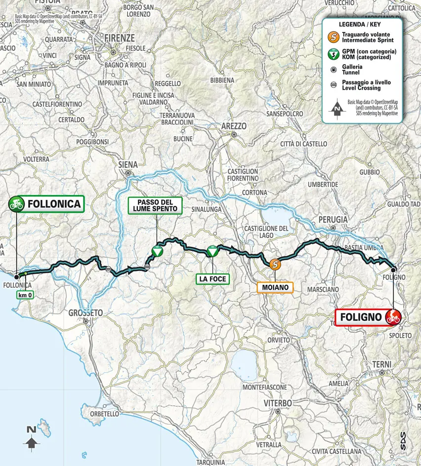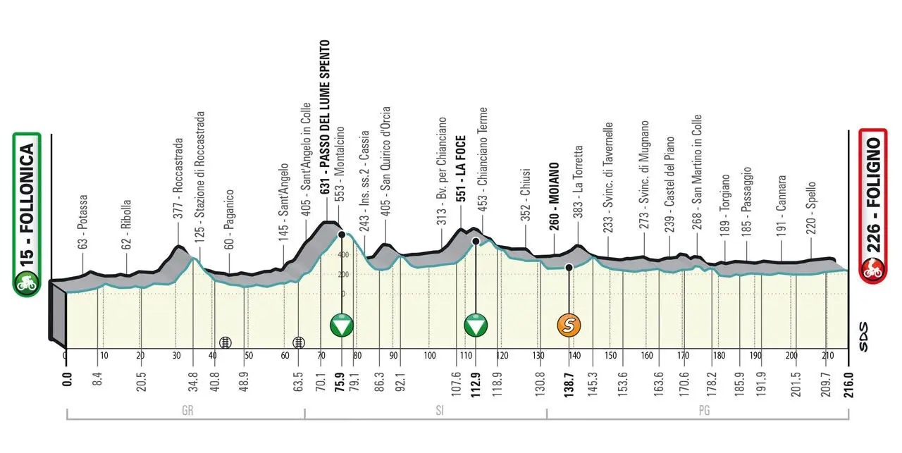 Mercredi 8 mars – Étape 3 – Follonica – Foligno (216 km)