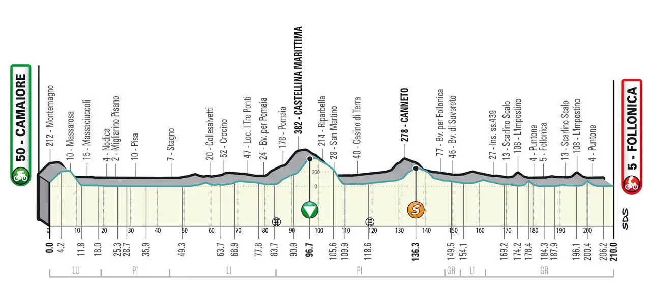 Mardi 7 mars – Étape 2 – Camaiore/Follonica (210 km)