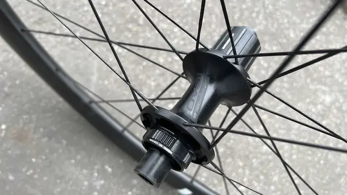 Sur les moyeux, on trouve la dernière version du corps de roue libre DT Swiss EXP avec de nouveaux roulements céramiques SINC et un système de couronnes crantées plus léger. Les roulements au niveau du corps de roue libre sont également plus écartés pour plus de rigidité.