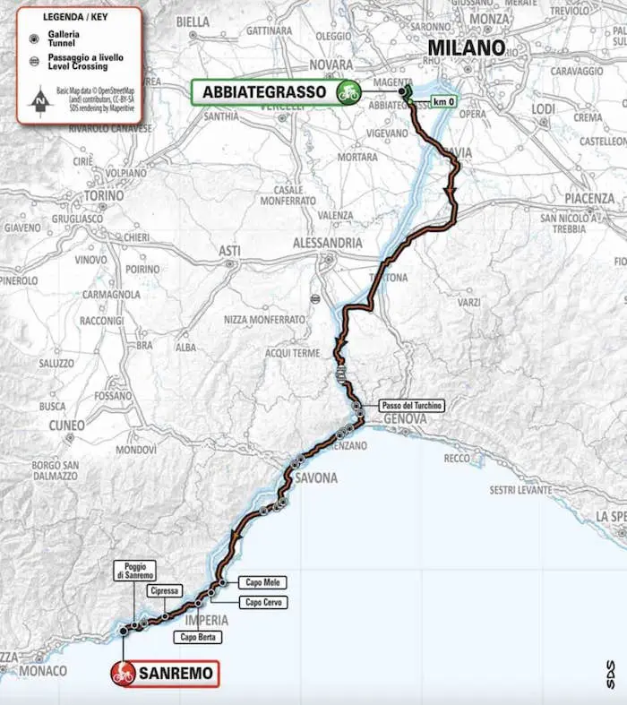 Le parcours de Milan-Sanremo 2023