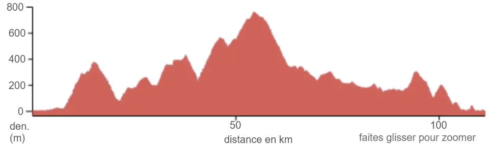 Le profil du grand parcours de 111 km du GFNY Cannes 2023