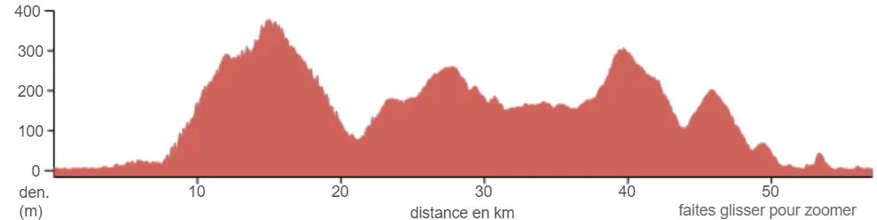 Le profil du petit parcours de 57 km du GFNY Cannes 2023