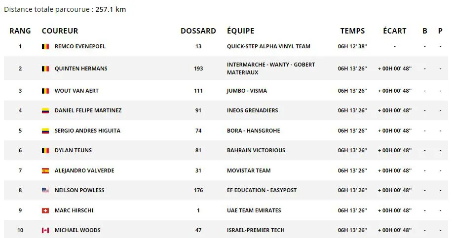 Jumbo-Visma : Benoot (Bel), Valter (Hon)