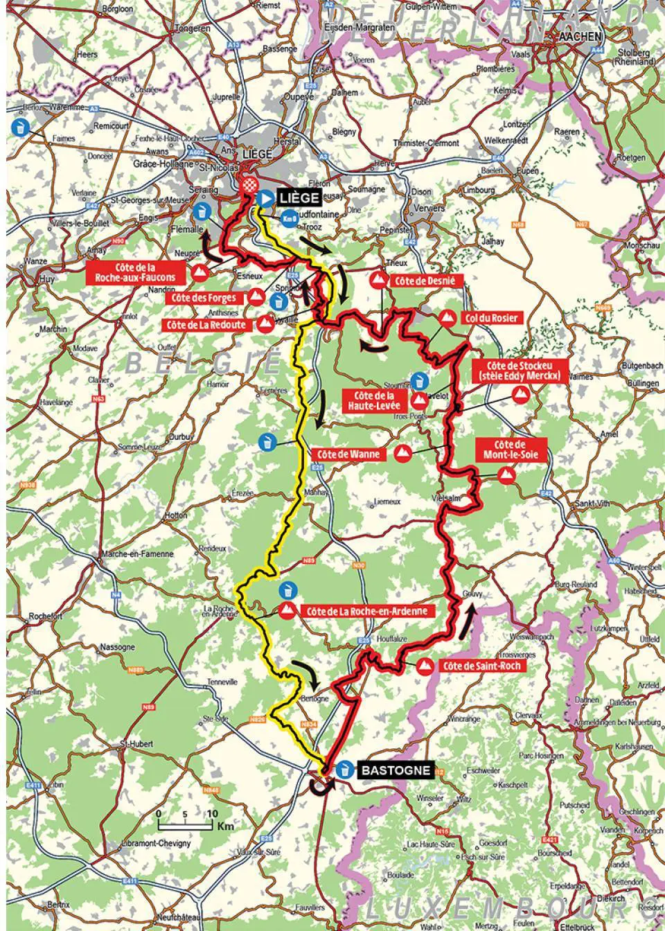 La carte du parcours de Liège-Bastogne-Liège 2023