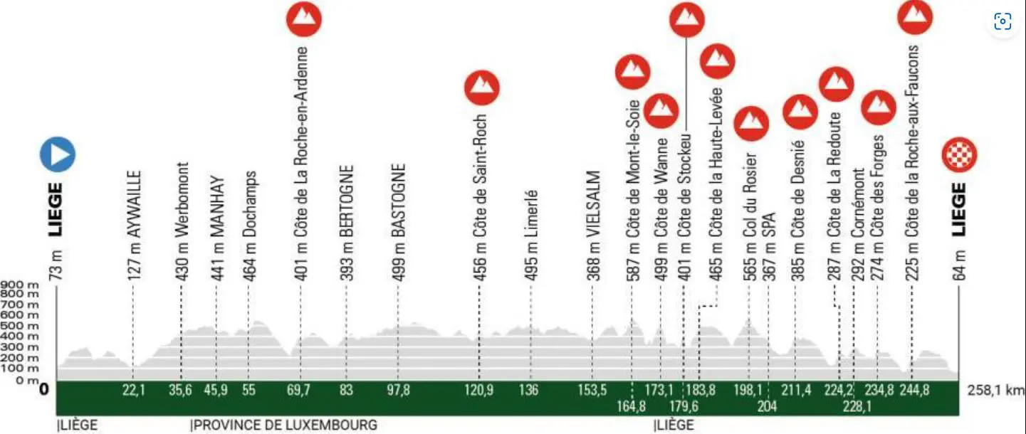 Le profil du parcours de Liège-Bastogne-Liège 2023