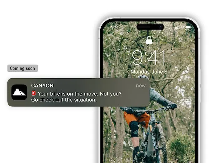 Récupérer un vélo volé est devenu beaucoup plus facile. Pour plus de sécurité et de tranquillité d’esprit, vous pouvez coupler certains vélos Canyon – en commençant par le nouveau Spectral:ON – avec l’application pour suivre l’emplacement du vélo. Garez-vous et verrouillez, profitez simplement de votre journée sans soucis.