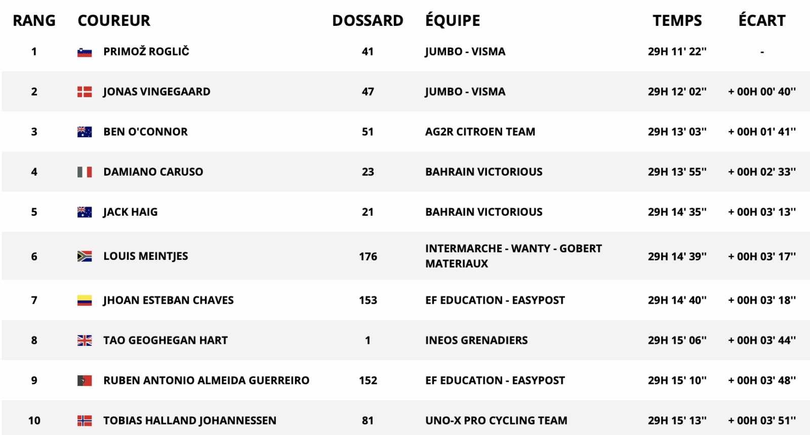 - 2022 : Primoz Roglic (SLO) ;