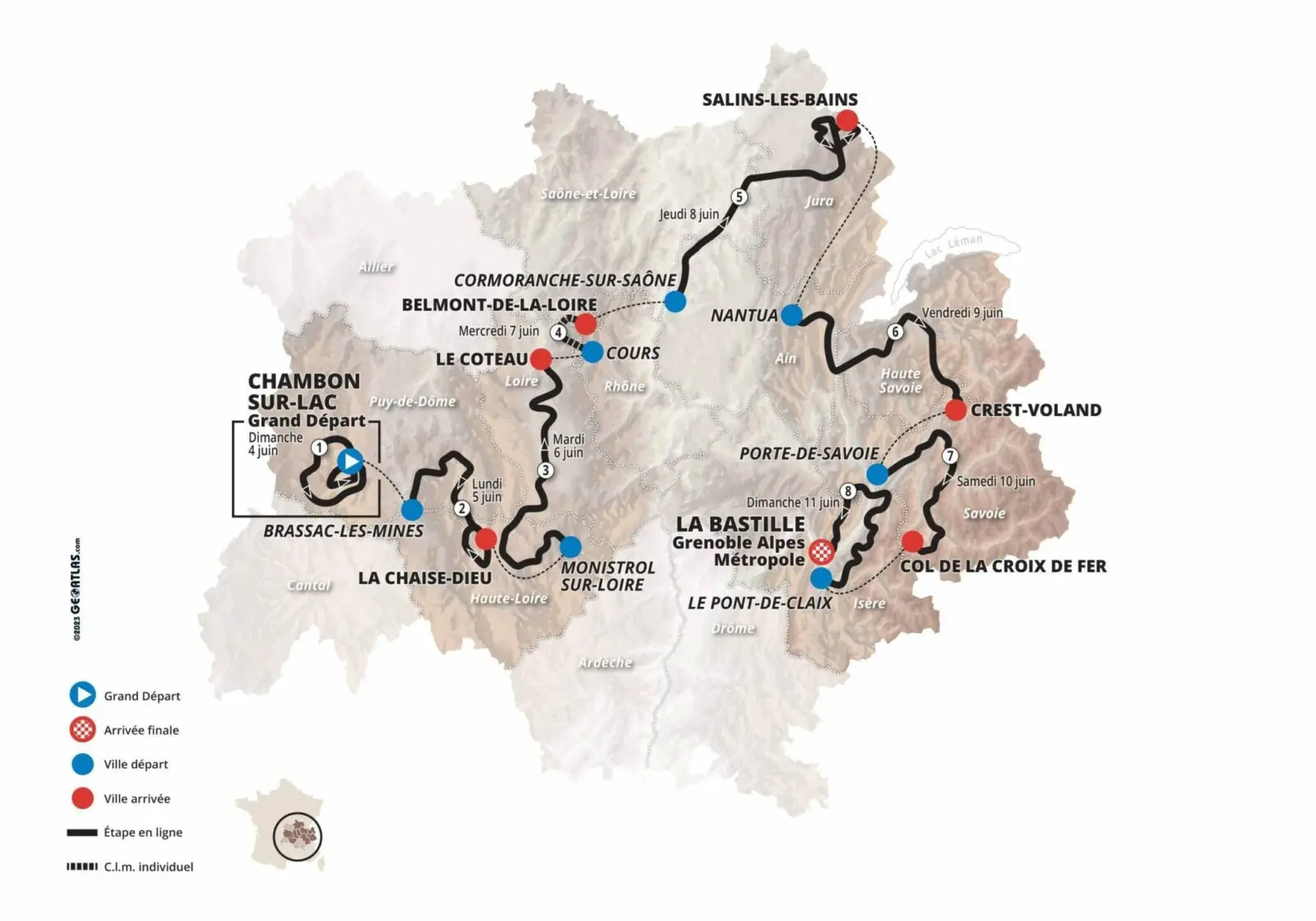 La carte et les étapes du Dauphiné 2023