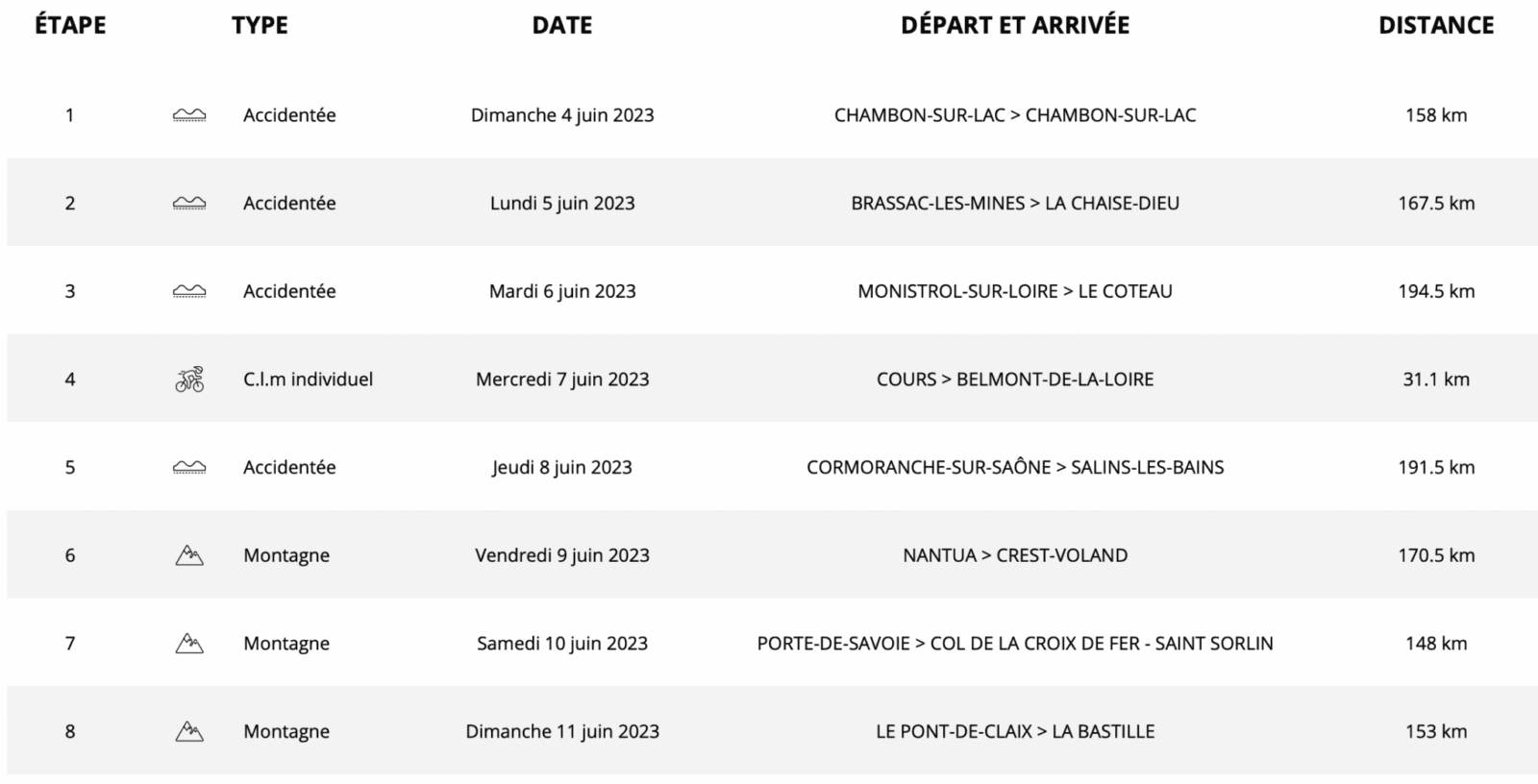 Dimanche 4 juin – Étape 1 – CHAMBON-SUR-LAC > CHAMBON-SUR-LAC – 158 km – Accidentée