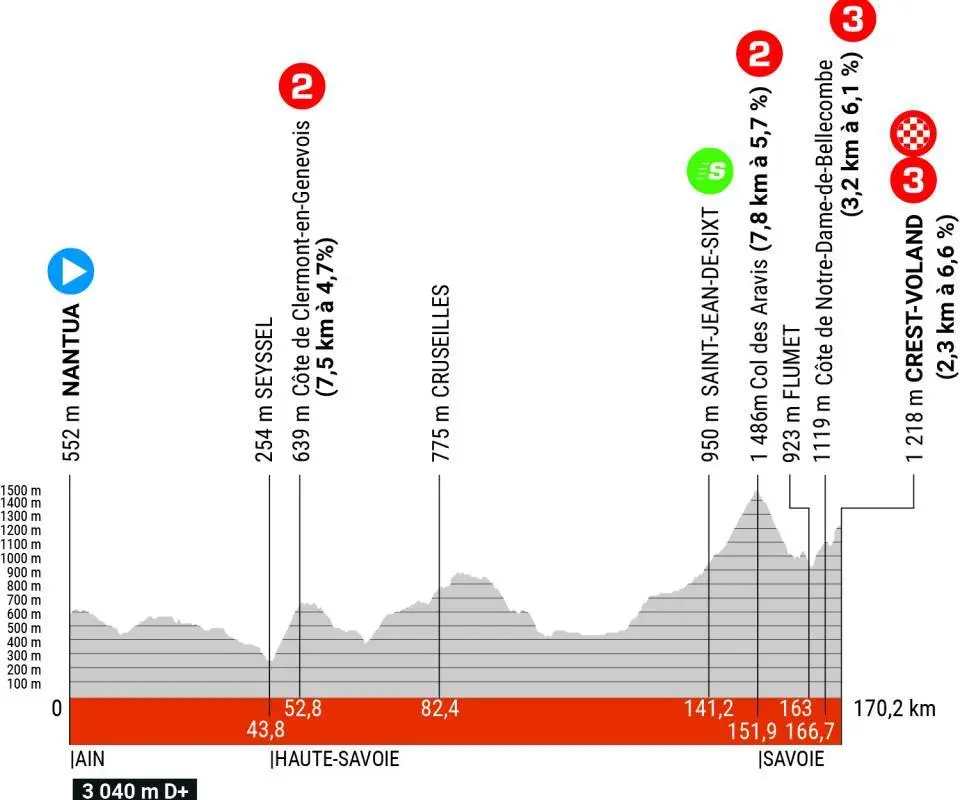 Vendredi 9 juin – Étape 6 – NANTUA > CREST-VOLAND – 170,5 km – Montagne