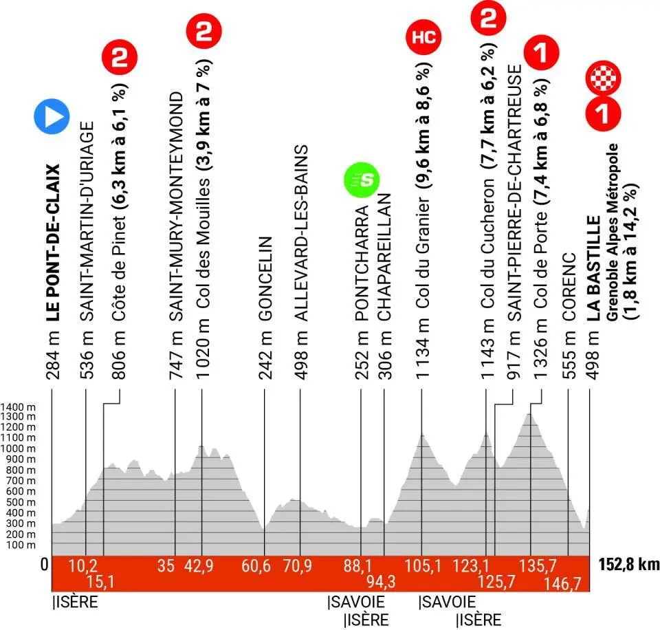 Dimanche 11 juin – Étape 8 – LE PONT-DE-CLAIX > LA BASTILLE – 153 km – Montagne
