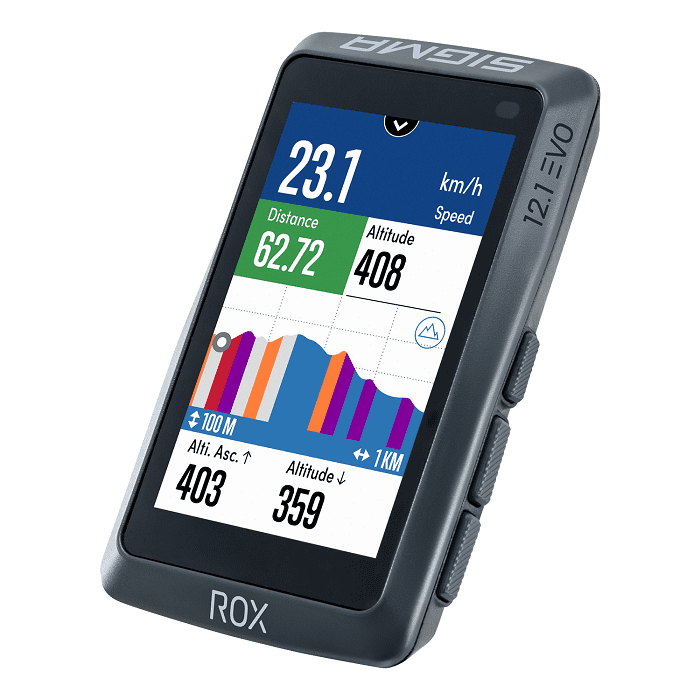 Avec le ROX 12.1 EVO, SIGMA présente le compteur GPS idéal pour profiter pleinement de toutes vos sorties. Que ce soit sur un vélo route, un gravel, un city/trekking, un VTT ou un VAE : grâce à ses nombreuses fonctions de navigation sur carte, le ROX 12 .1 EVO vous conduira toujours sur le meilleur itinéraire pour vous mener à destination en toute sécurité. Il enregistre de nombreuses données, vous permet d’analyser votre sortie en détails à tout moment, et fait passer l’entraînement à un niveau supérieur.