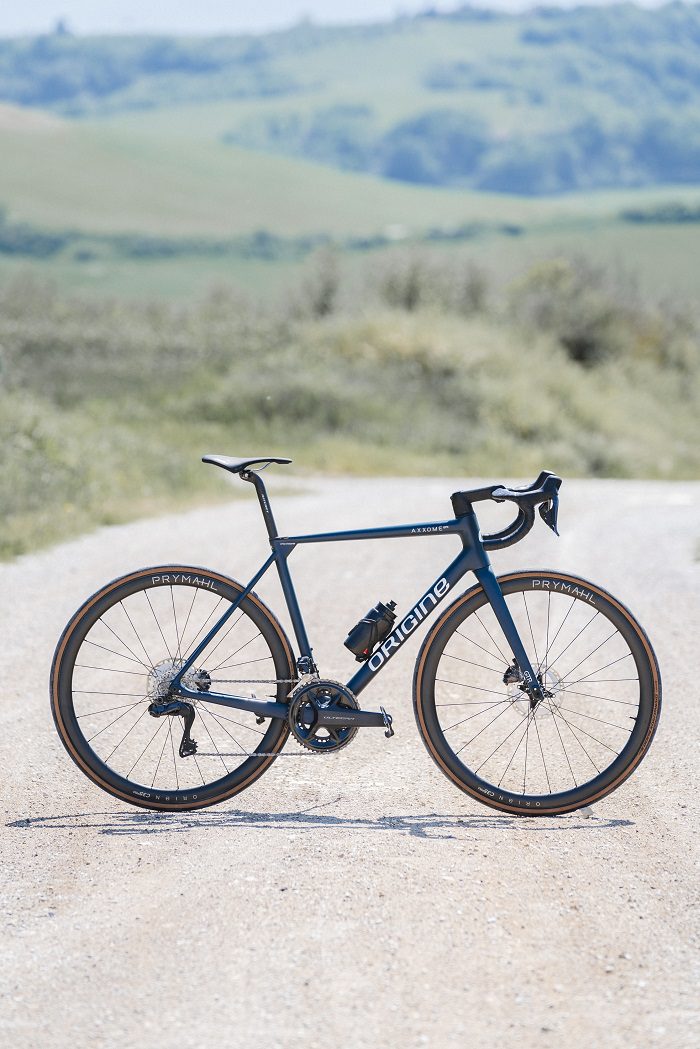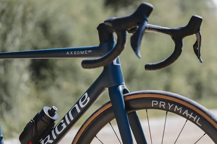 En 2021, L’Axxome Evo a consacré le carbone UML. Les résultats ont tout de suite été impressionnants. Pour mettre au point cet Axxome, Origine s’est laissé guider pour ce que dictait l’UML. La forme des tubes a été optimisée, de même que l’aspect du cadre pour élaborer un moule qui tire le meilleur de l’Unique Matrix Layup. Contrairement à l’Axxome II Evo, c’est tout le moule de l’Axxome qui a été pensé autour de l’Unique Matrix Layup. Le triangle avant était moulé avec le procédé UML, à présent c’est l’intégralité du cadre, triangle avant et triangle arrière qui sont moulés UML. Ce qui résulte visuellement de l’Axxome n’a pas été commandé par une volonté esthétique, mais bien par l’optimisation de l’UML. L’œil s’est laissé guider par ce que dictait la technologie. Les formes des tubes, les encombrements aux endroits clefs, tout ça est le fruit d’une modélisation prenant en compte l’optimisation de l’UML en respectant la mécanique des fluides.