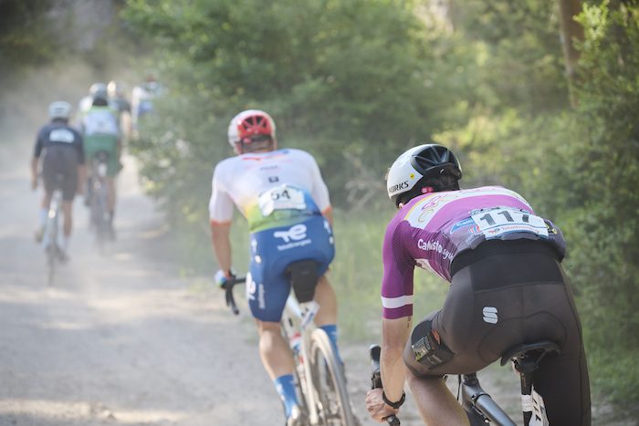 Ces épreuves UCI, qui se sont déroulées ce dimanche, ont été à la hauteur de toutes les attentes : d’abord chez les femmes, où les meilleures spécialistes étaient présentes. Dès le pied de la Pouncho, nous avons vu l’athlète de longue distance, Virginia Cancielleri, imposer le rythme, rapidement relayée par Carolin Schiff, meilleure cycliste Gravel du moment. Leur montée impressionnante de la Pouncho en 22min19s, seulement 4min de plus que le trio d’hommes composé de Freddy Ovett, Aurélien Philibert et Byron Munton, a captivé l’attention. Ces trois-là n’ont eu que très peu de temps pour eux avant d’être rattrapés par un peloton réduit à une vingtaine de coureurs.