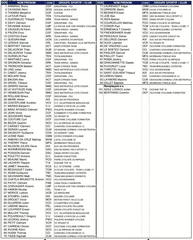 Les engagés sur le Championnat de France CLM 2023