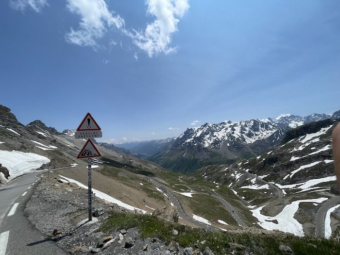 5 km de descente, une belle ligne droite où il faut souvent pédaler et on rentre dans Valloire. Quelques mètres en mode Paris-Roubaix, nul doute que l’on se souvient de ce passage qui secoue et on commence alors tout de suite le géant : le Galibier.