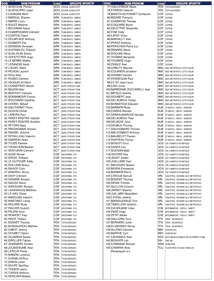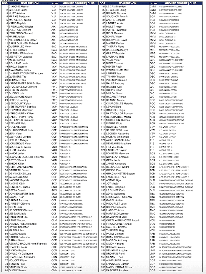 La liste des engagés pour le championnat de France route hommes 2023