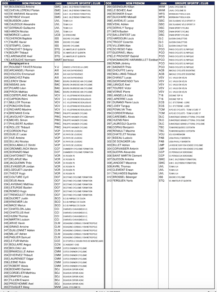 La liste des engagés pour le championnat de France route amateurs 2023