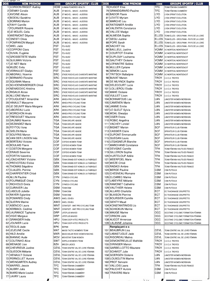La liste des engagés pour le championnat de France route femmes 2023