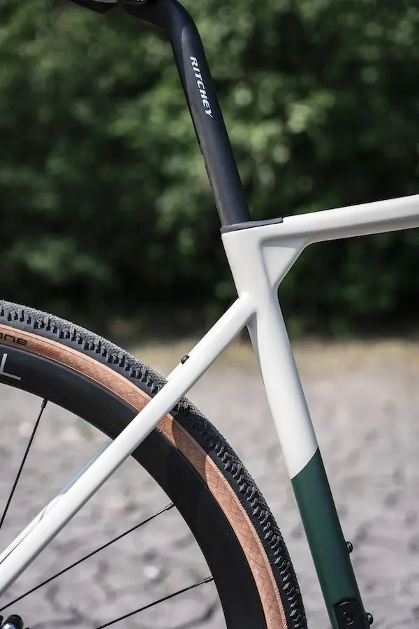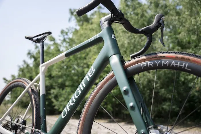 Origine a également choisi de conserver exactement les mêmes sections de pneus compatibles à savoir maximum 700×45 et 650×47. Pourquoi pas plus gros ? La polyvalence. Plus gros c’est faire des choix techniques qui segmentent automatiquement un vélo en renonçant à la polyvalence. Le Graxx est un gravel ultra polyvalent pouvant enchainer des portions off road engagées en haute montagne, enchainer les kilomètres de pistes avec la sensation de piloter un tapis volant, partir en voyage en autonomie totale mais aussi pouvant être monté super light pour une utilisation route endurance et boucler l’Etape du Tour ou une Marmotte.