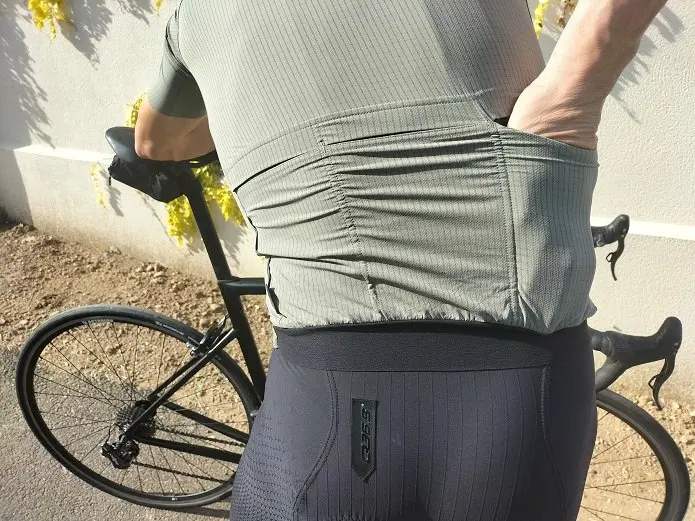 L’arrière du maillot retient aussi l’attention du fait de la construction même des poches, dont le sommet est « caché ».