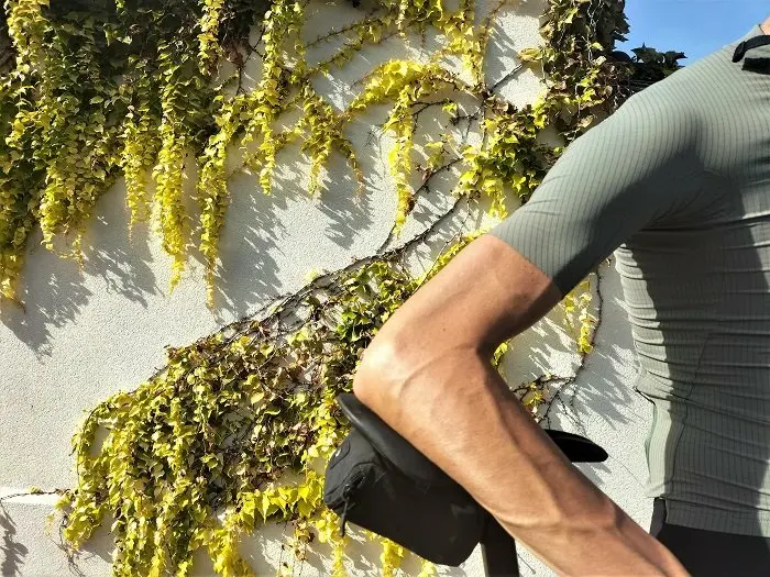 En roulant, le maillot Pinstripe Pro se montre idéal en tous points : par exemple, la coupe est proche du corps sans être restrictive, tant au niveau des épaules, des manches et du torse.