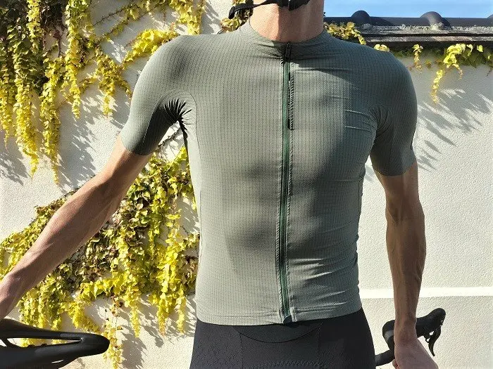 Avec 115 g sur la balance et un tissu fin, ce maillot est destiné à l’été mais il peut être utilisé dès 15/18°C environ, alors associé à des manchettes voire un gilet sans manches pour baisser encore la fourchette optimale de température. A l’inverse et pour les chaleurs encore plus extrêmes bien au delà de 30°C, le maillot Cima est le plus indiqué.