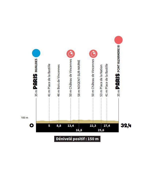 Le parcours du chrono (32,4 km) sera le même pour les femmes et les hommes, entre les Invalides et le Pont Alexandre III.