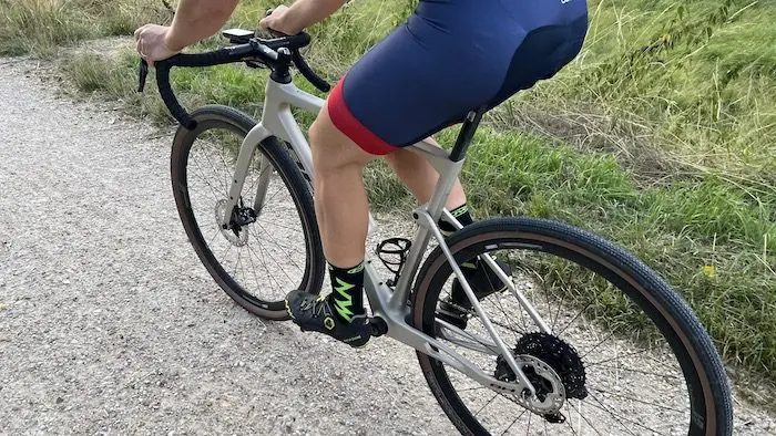 Dans les descentes, sans qu’elles soient extrêmes en termes de difficultés, la qualité du freinage et la stabilité du vélo restent appréciables et rassurantes. La position équilibrée et la géométrie du vélo sont aussi un avantage pour passer avec plus d’assurance qu’avec un vélo de cyclo-cross.