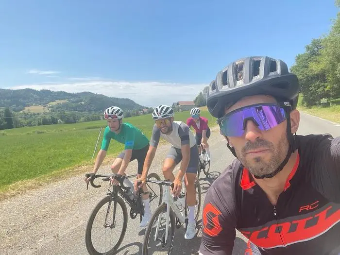 1 Avril 2023 – Je m’apprête à prendre la décision la plus importante de l’année du point de vue vélo. Je sens que je suis en train de reproduire les mêmes erreurs que l’année passée niveau préparation. Je fais tout en dépit du bon sens et je me dirige tout droit vers un mur nommé Col de Joux Plane. Nous sommes à trois mois de l’épreuve, ça ne laisse pas beaucoup de temps mais assez tout de même pour redresser un peu la barre. Je me décide à faire appel à une aide extérieure pour me coacher et me guider au mieux pour passer les cols de l’été. Je contacte quelques personnes et je finis par appeler la seule d’entre elle qui connait parfaitement la région où je roule et surtout qui connait mes contraintes professionnelles et personnelles : Guillaume Judas de www.3bikes.fr. Après un échange téléphonique visant à accorder nos violons, il accepte de me coacher et de me bousculer dans mes habitudes bien établies de cyclo dominical. Une grosse partie des séances se passera sur Zwift et ses map bien connues de tous depuis le confinement, je n’y ai jamais trop mis mes roues virtuelles y préférant l’appli sans âme Trainer Road. À partir de ce jour, je lui fais une confiance aveugle et tente de respecter à la lettre l’ensemble des séances et programmes hebdomadaires qui me sont communiqués chaque dimanche soir.