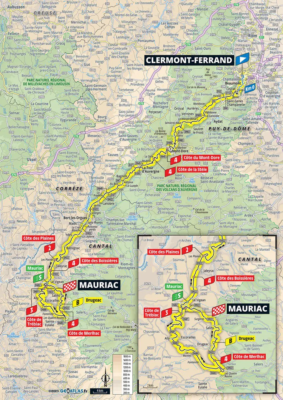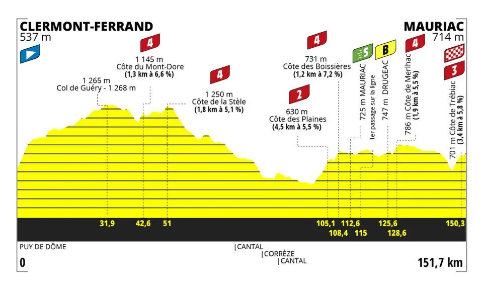 Étape 2 – Lundi 24 juillet : Clermont-Ferrand – Mauriac, 148 km