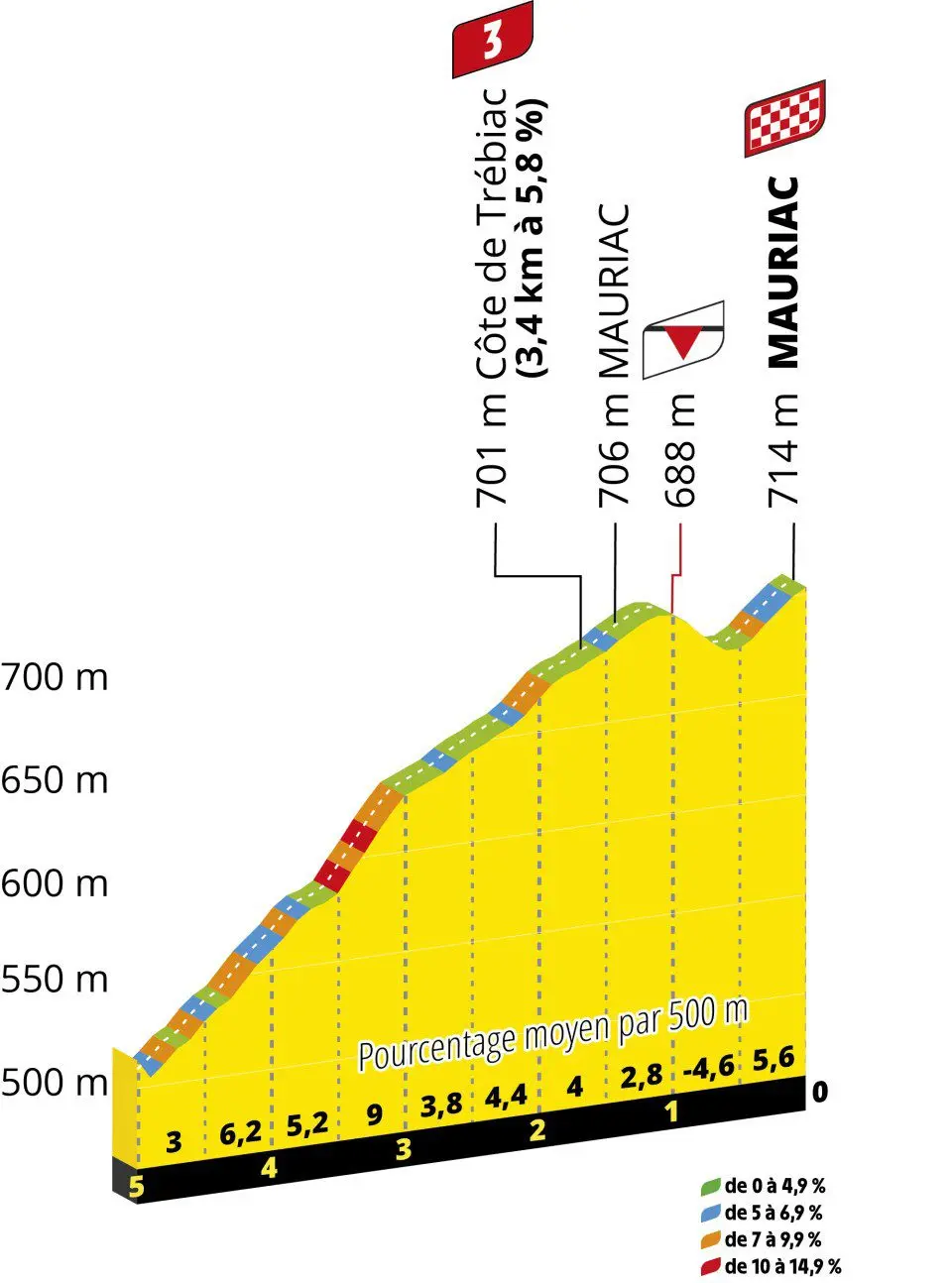 Côte de Trébiac (catégorie 3), km 150,3 – 701 m, 3,4 km de montée à 5,8%