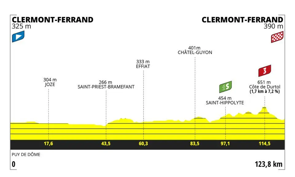 Étape 1 – Dimanche 23 juillet : Clermont-Ferrand – Clermont-Ferrand, 124 km